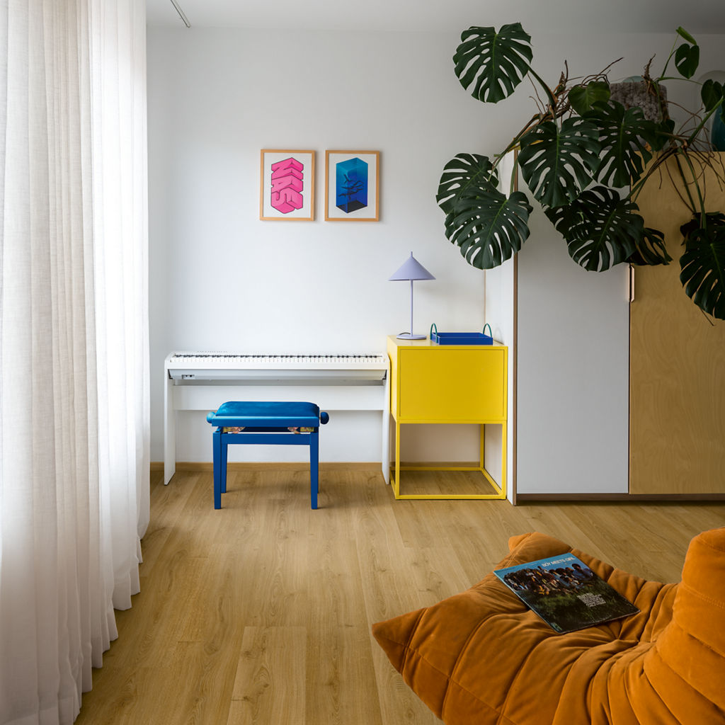 De vloer voelt comfortabel aan en dempt loopgeluid. Dit maakt hem ideaal voor woonruimtes, keukens en andere druk belopen delen van de woning.