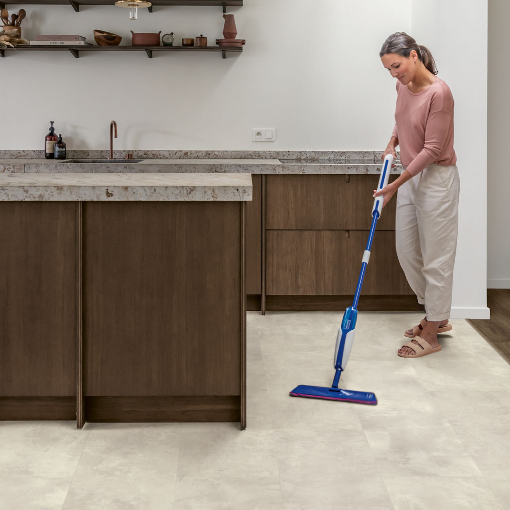 Dankzij het handige kliksysteem is de vloer snel te plaatsen. Regelmatig stofzuigen en lichtvochtig dweilen is voldoende om de vloer mooi te houden.