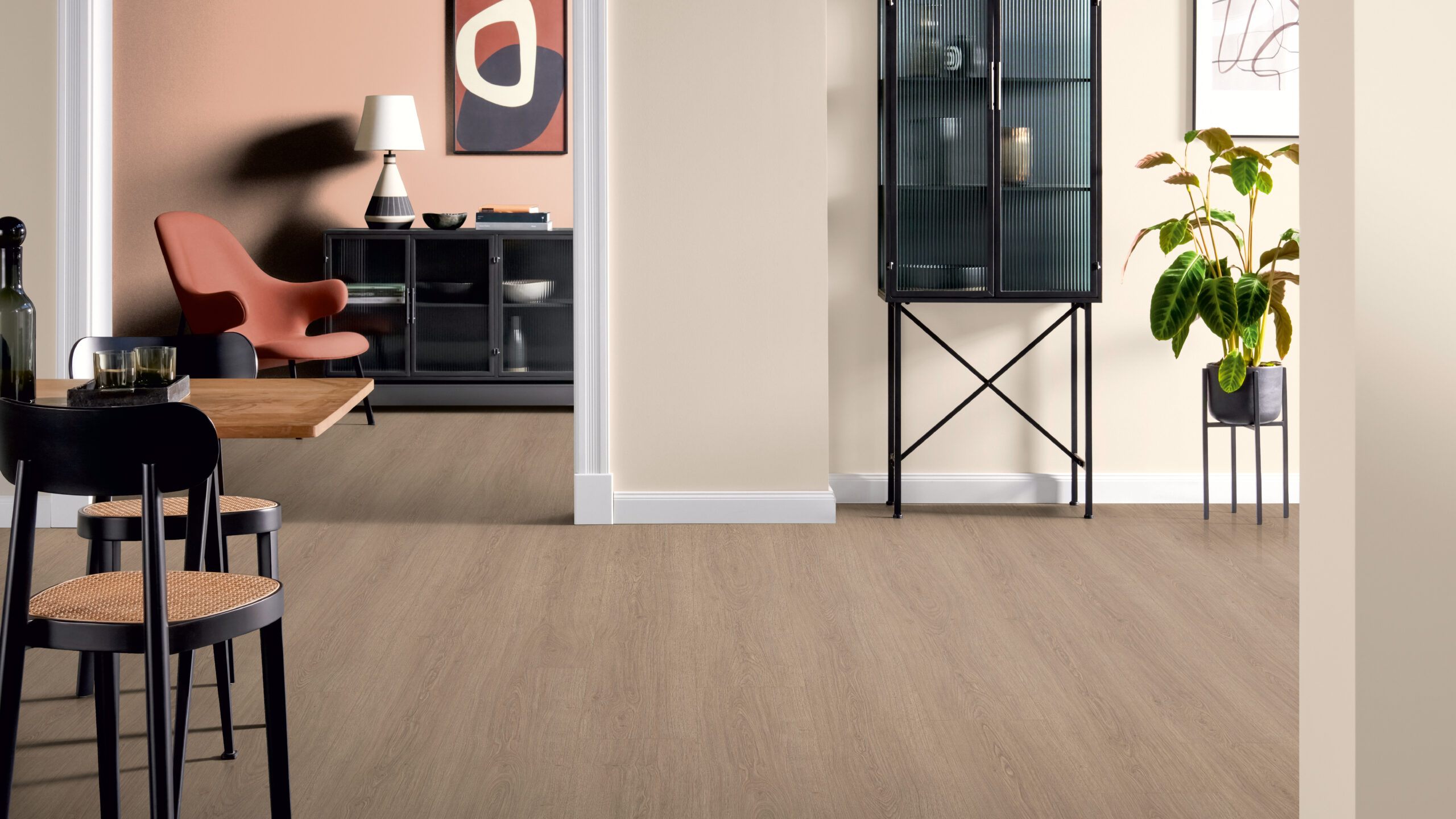 Laminaat is praktisch in het dagelijks leven: het is onderhoudsvriendelijk en geschikt voor veelgebruikte ruimtes. Met een goede ondervloer ervaar je extra comfort en geluidsdemping.