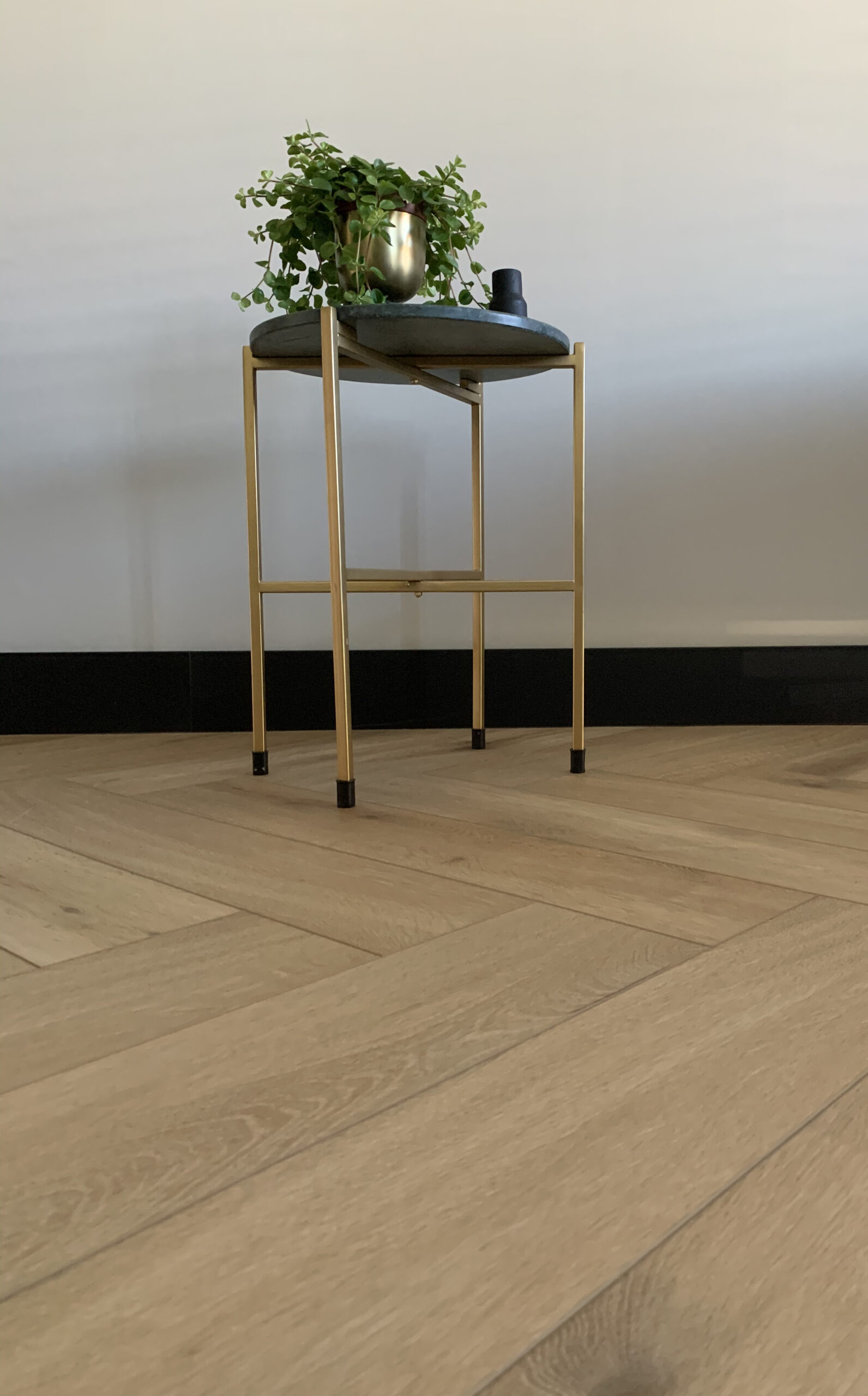 Leg de vloer zwevend op een geschikte ondervloer. Zorg voor een vlakke, schone ondergrond en werk randen af met plinten en profielen voor een strak geheel.